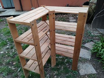 scaffale ad angolo ikea con 4 ripiani regolabili tutto in legno misure circa cm 75x75 altezza circa 120 consegna a mano o spedizione via corriere