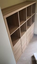 Vendesi scaffale Ikea Kallax, effetto rovere, come nuova. In aggiunta, la struttura è dotata di n. 6 scomparti con chiusura + n. 4 cassetti, già assemblati, il tutto come da foto.