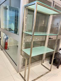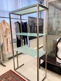 Scaffale o espositore o libreria in ferro verniciato a caldo con ripiani di vetro opaco Grande robustezza 90x40h171