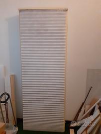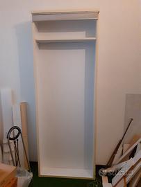 Scaffale in legno bianco con tendina a soffietto alto cm 220 largo 80 prof 19 utilizzabile come contenitore sci, scope, ecc o come libreria aggiungendo piani