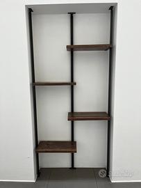 Scaffale / libreria realizzati artigianalmente con suttura in ferro e ripiani in legno.