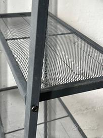 Scaffale in metallo grigio scuro. Adatto sia per interni che esterni. - Struttura robusta e durevole. Quattro ripiani, in ottimo stato. Larghezza 60 cm Altezza 148 cm Profondità 35 cm