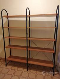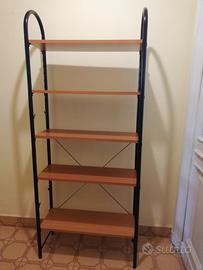 Scaffale libreria. Montanti in acciaio color nero. Piani color ciliegio. Misure scaffale singolo: LUNGH. - CM 74 H. - CM. 177 PROF. - CM 30 Possibilità composizioni multiple.