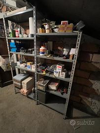 Lo scaffale al momento è montato ed occupato da attrezzi e materiali (v.foto) ma immediatamente svuotabile e smontabile per la consegna.