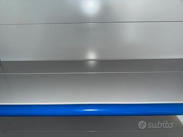 Scaffale professionale in lamiera verniciata, modulare: grazie ai fori laterali puoi regolare l’altezza delle mensole o aggiungerne altre.