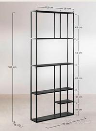 Scaffale nero di metallo, modello Thura del sito Sklum. Misure 80 x 180 x 18cm. Condizioni perfette, vendo per trasloco. Scambio a mano a Padova