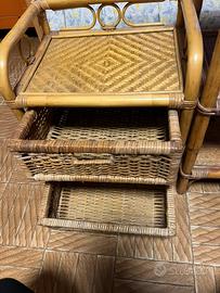 Vendo due cassettiere e uno scaffale. Le cassettiene contengono due cassetti l una. Sono di vimini e bambù