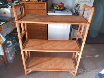 libreria scaffaletto tre ripiani legno vimini