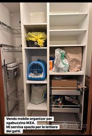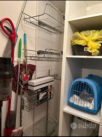 Scaffale per ripostiglio o lavanderia di colore bianco presenta cassetti,mensole e carrello d'acciaio per riporre detersivi o altro. Misura altezza 234 cm x 140 cm e 60 cm di profondità . Da ritirare in loco