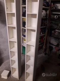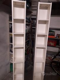 N.2 scaffali colore bianco, misure: altezza 200 cm, larghezza 20 cm, profondità 17 cm., più n.8 ripiani di riserva.