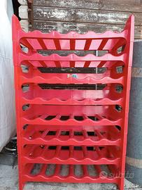 scaffale portabottiglie in plastica, formato da 8 scaffali per 6 posti ciascuno , in perfette condizioni
