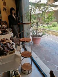 Scaffale decorativo per un arredo particolare, a scala a chiocciola. 4 ripiani in legno di 26 cm di diametro