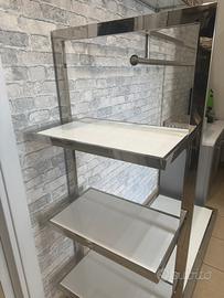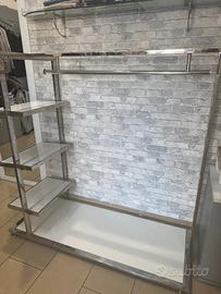 Scaffale Espositore con Ripiani – Struttura in Metallo Cromato e Piani Bianchi Lucidi