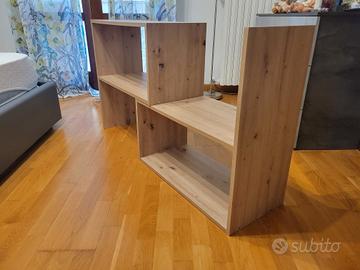 scaffale in legno colore noce scomponibile da posizionare in varie forme .