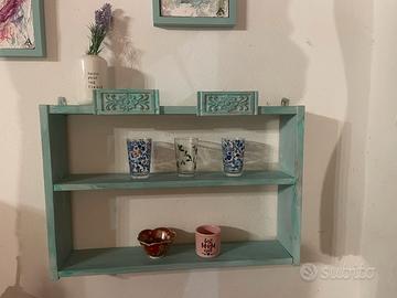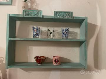 Scaffale shabby verde porta spezie o bicchieri