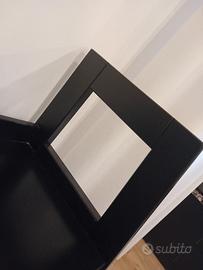 come da foto allegate è in legno nero, 4 ripiani ed è a forma di scaletta ...in alto i ripiani si stringono e si allargano in basso.
