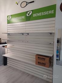 Vendo scaffalatura da parete in ottime condizioni, perfetta per negozi, erboristerie, parafarmacie, palestre o uso personale.