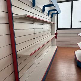 Vendo scaffali professionali da negozio in metallo verniciato, robusti e modulari, adatti a negozi, magazzini, showroom o attività commerciali.
