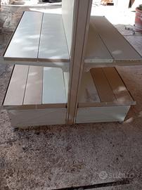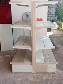 5 metri di scaffali di metallo usati a gondola altezza 1,50 e con le mensole di profondità 0,50 ,molto resistente. Devono essere riverniciati. Senza ruggine, buono stato. Prezzo 110 euro a lato. (20 euro al metro)