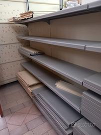 Scaffali per merce diversa tipologia,ottima qualità, pannelli resistenti e ben rifiniti, doppio lato, altezza mt 1,50, larghezza 93 cm circa. Disponibili circa 10 metri. € 30 metro. Ritiro in sede.