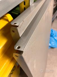 Scaffali in lamiera leggera. Misura 100x400 2 pz disponibili Barre lunghezza 95 che vanno montate una sopra l’altra. Solo ritiro