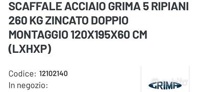 Vendo 3 scaffali Grima 120 cm 5 ripiani in metallo