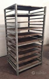 Scaffali impilabili in ferro zincato con 10 ripiani in legno L=95cm H=170 P=70 Peso 80 kg