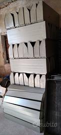 vendo scaffali in acciaio usati in buono stato senza telaio portante. utili da ripiani per molteplici utilizzi. possibilità di avere anche divisori. il numero complessivo comprende 60 scaffali e 360 divisori. ritiro a carico del compratore.