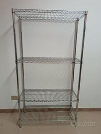 1 scaffale in acciaio cromato con 4 ripiani L 60cm, H 168cm, P 35cm