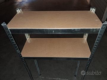 2 scaffali in alluminio con 5 piani da cm.30xcm.75 e 4 pali da 150 cm.entrambi per un totale di 30€ Ritiro zona roma centocelle