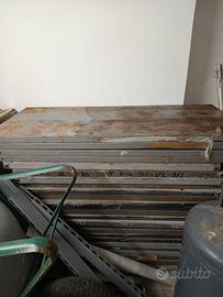 Scaffali in ferro 27 ripiani completa. Misure: 1,20 x 50 cm. Usata in un deposito per organizzare materiale di lavoro edilizia
