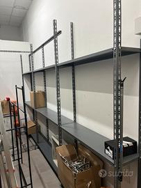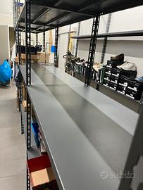 Scaffali in ferro di varie misure. Usati pochissimo e praticamente nuovi come si vede in foto. NO RUGGINE O PIEGHE. perfetti per scaffalature da mettere in cantina o nel box. Disponibili in varie misure. Prezzo 50 euro a campata compreso di ripiani.