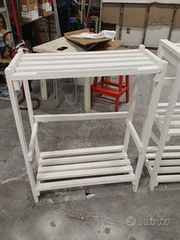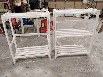 Vendo 2 scaffali in legno colore bianco, completamente ristrutturati e in ottime condizioni. Ideali come portapiante, ma perfetti anche per decorare balconi, verande o ambienti interni.