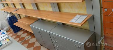 Le mensole sono acquistabili in abbinato ad una cassettiera e un mobile a due ante visibili in foto (entrambi in laminato, con le ruote sotto, misurano 1 metro di larghezza, altezza 81 cm e profondità 43 cm).