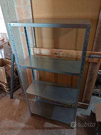 vendiamo come da titolo e foto: Scaffali a 4 ripiani. Misure: 75x30x145cm portata 160kg totale (40Kg ripiano)