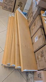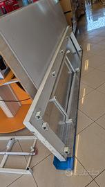 Scaffali componibili in resistente struttura metallica altezza circa 2.60 mt. Componibili con mensole in legno ed in vetro in dotazione . Predisposti per neon nella parte superiore. Smontaggio e trasporto a carico dell'acquirente. Sono circa 20 mt lineari