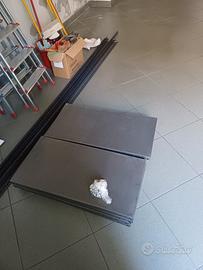 vendo scaffali in metallo per negozi/cantine, lunghezza 4 metri lineari, più uno nero da assemblare, con tenda inclusa