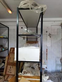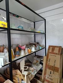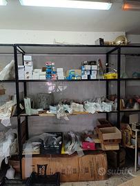 Vendesi 4 scaffali industriali in ferro, con ripiani in legno, a 4 piani
