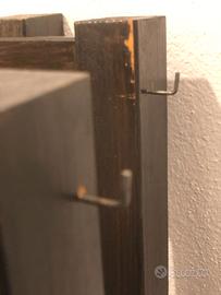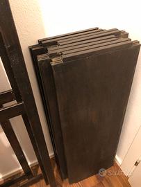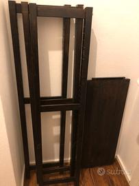 Scaffali IVAR di Ikea con trattamento marrone scuro impermeabile. Composto da 3 montanti + 8 ripiani + 1 croce. I Montanti da un lato hanno degli uncini perché ci avevo messo delle tende colore beige, se interessati posso cercare di recuperarle dalla cantina ma saranno da lavare.