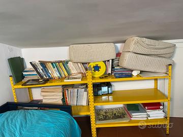 Vendo causa trasferimento urgente n.4 Scaffali laminati di colore giallo, di cui 2 bassi a 3 ripiani lunghi rispettivamente circa 1 metro, altri 2 moduli a 5 ripiani, lunghi circa 1 metro , utilizzati tutti come libreria in buone condizioni. Ritiro e smontaggio a carico dell’acquirente. Disponibile a ulteriori info ed a concordare i tempi di consegna.