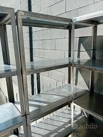 Vendo scaffali in acciaio inox per celle frigorifere totale 6 metri , 4 ripiani con scaffale per appendere salumi Solo ritiro Serieta