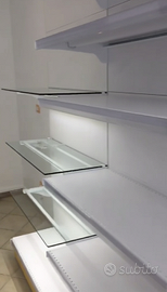 1: scaffale con mensole in vetro temperato e luci led,