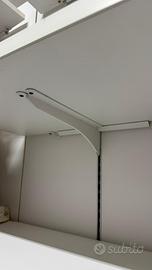 13 pannelli in legno con guide per mensole, appendiabiti a L ed asta dritta, disposizione modulabile. In ottimo stato!
