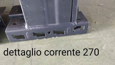 Abbiamo inoltre disponibili 12 correnti da 270 cm (per 3 bancali) ---> ATTENZIONE --> i correnti da 270 sono privi di spalle, vedere la foto per gli attacchi specifici per questi correnti <---
