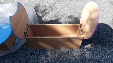 Vendo 2 scaffali da cameretta in legno al prezzo di 40euro cadauno. Mai utilizzati o montati. Misure cassetto: 30cm x 30cm x 90cm Diametro apertura rotonda: 52cm