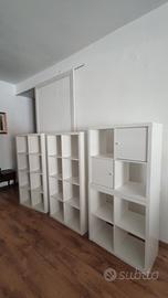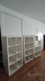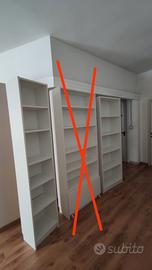 scaffali bianchi in legno, disponibili: 3 da 198 cm X 71 cm profondità 28 cm 1 da 203 cm X 40 cm profondità 28 cm 2 da 147 cm X 76 cm profondità 38,5 cm 2 da 76 cm X 76 cm profondità 38,5 cm