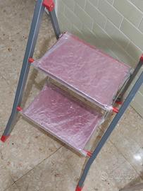 Scala con due gradini con funziona anche di sedia, praticamente mai usata e ricoperti anche i due gradini con cellofan per riparare da polvere e mantenere il prodotto come nuovo.