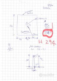 Pianta quadra 140x140 cm ultimo gradino sbarco a 294 cm, 14 gradini.