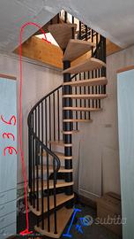 scala a chiocciola in legno e metallo. Made in ALTO-ADIGE, design ESTFELLER. si trova attualmente a Bressanone (BZ). nel mese di giugno verrà smontata. ritirabile in loco oppure posso portarvela (dupende dalla distanza) a spese vostre (previo accordo). Pagata a suo tempo quasi 10.000 euro. Vendo poiché non vorrei vederla prendere polvere in cantina. Prezzo trattabile nei limiti del ragionevole . misure foro 140cm; altre misure su foto.