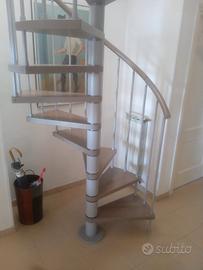 scala a chiocciola da interno per un piano di casa standard regolabile tramite spessori, la scala é larga 130cm, gli scalini sono in legno molto resistente, il prodotto é come nuovo, per ulteriori informazioni contattami